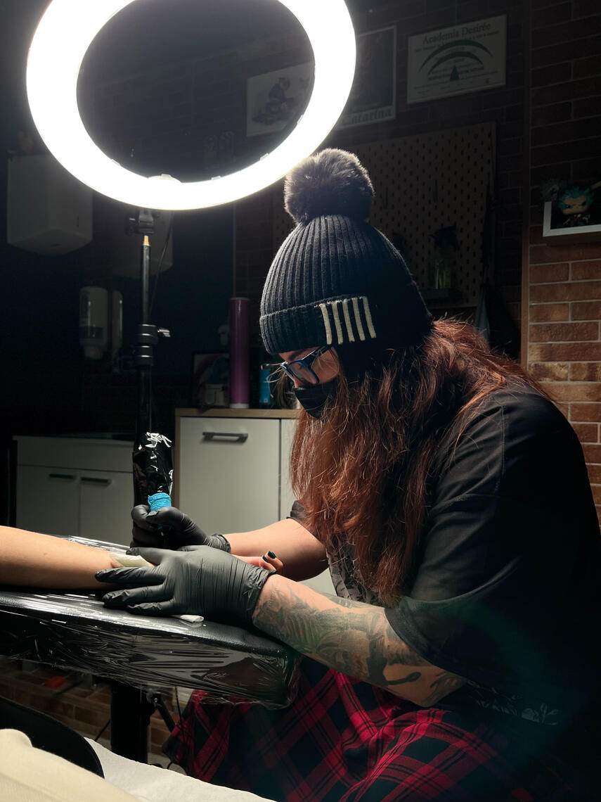 Está especializada en tatuajes de anime, ilustración y puntillismo, donde combina sensibilidad, técnica y un enfoque muy cuidado en cada detalle.Su trabajo destaca por la precisión en las líneas, el uso del negro y el punto, y una estética influenciada por el arte gráfico y la cultura visual japonesa.Más allá de sus especialidades, Sofía se adapta con fluidez a otros estilos, siempre manteniendo su sello artístico y un trato cercano con cada persona que tatúa.